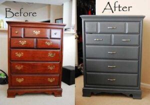 Another great way to update the look of your old wood furniture is by painting it in a new color or pattern. Start by wiping down the surfaces with some warm water mixed with dish soap – this will help remove dirt and grease build-up on top of the finish. Then lightly sand the surface with fine-grit sandpaper before priming it with an appropriate primer; this will also help create an even base layer for you to paint over later on. When choosing paint colors and finishes, there are endless possibilities; choose something bright if you want a more energized space, opt for neutrals if you want a more calming atmosphere, use patterns like chevrons or stripes if you want something eye-catching – the options are pretty much limitless! Remember that multiple coats might be necessary depending on how vibrant colors you decide upon. Finally, seal up your masterpiece with several layers of protective varnish so that it will last many years without having to touch up too often.